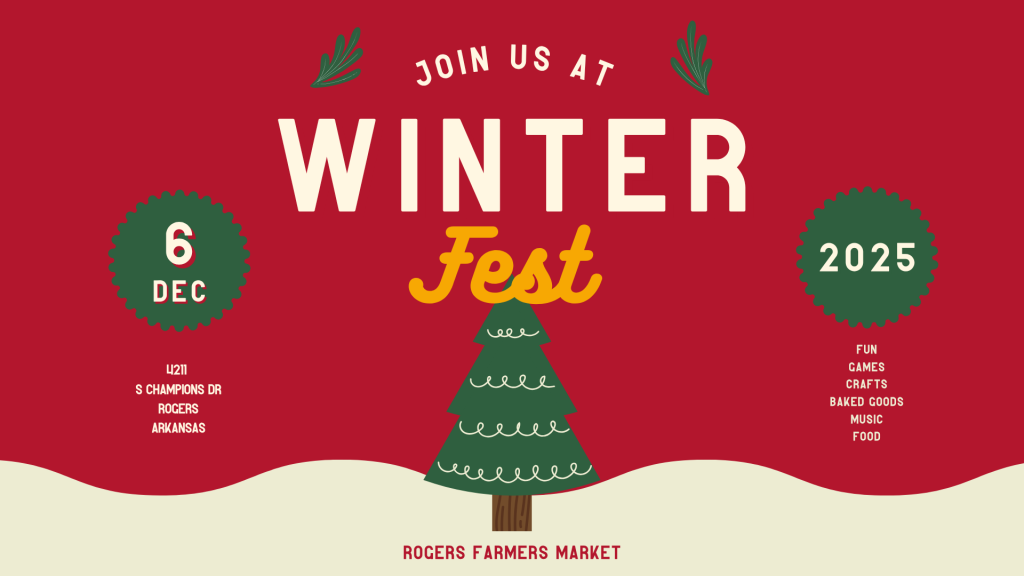 Join us for Winter Fest at the Rogers Farmers Market on Friday, December 6th from 9 AM–2 PM. Enjoy holiday shopping from local vendors, festive treats, hot chocolate, kid-friendly activities, and Christmas photo ops. Santa Claus will be visiting One Uptown, making it the perfect family outing. Come celebrate the season and help us launch a new holiday tradition at 4211 S Champions Dr in Rogers.