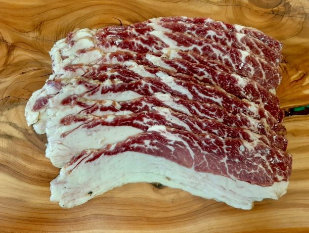 Beef bacon has a similar texture to its pork equivalent, but because we use our farm-raised Angus beef, the end result has a concentrated flavor unlike anything you have ever tasted!